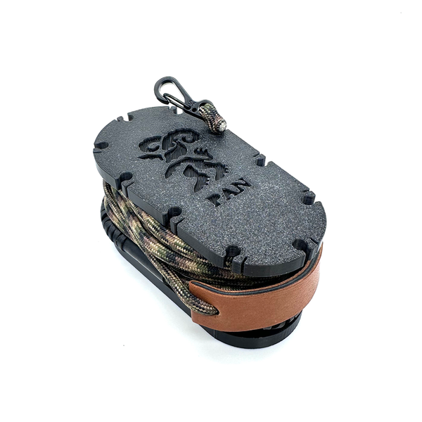 The carry tools are custom-designed and 3D printed for the Pan sling. They provide some of the best options for compact carry and storage. The Reel is a simple and compact go-to method for sling carry and storage. The Little Pan is even more compact, turning the Pan sling into a pocket-friendly world traveler or a keychain accessory.