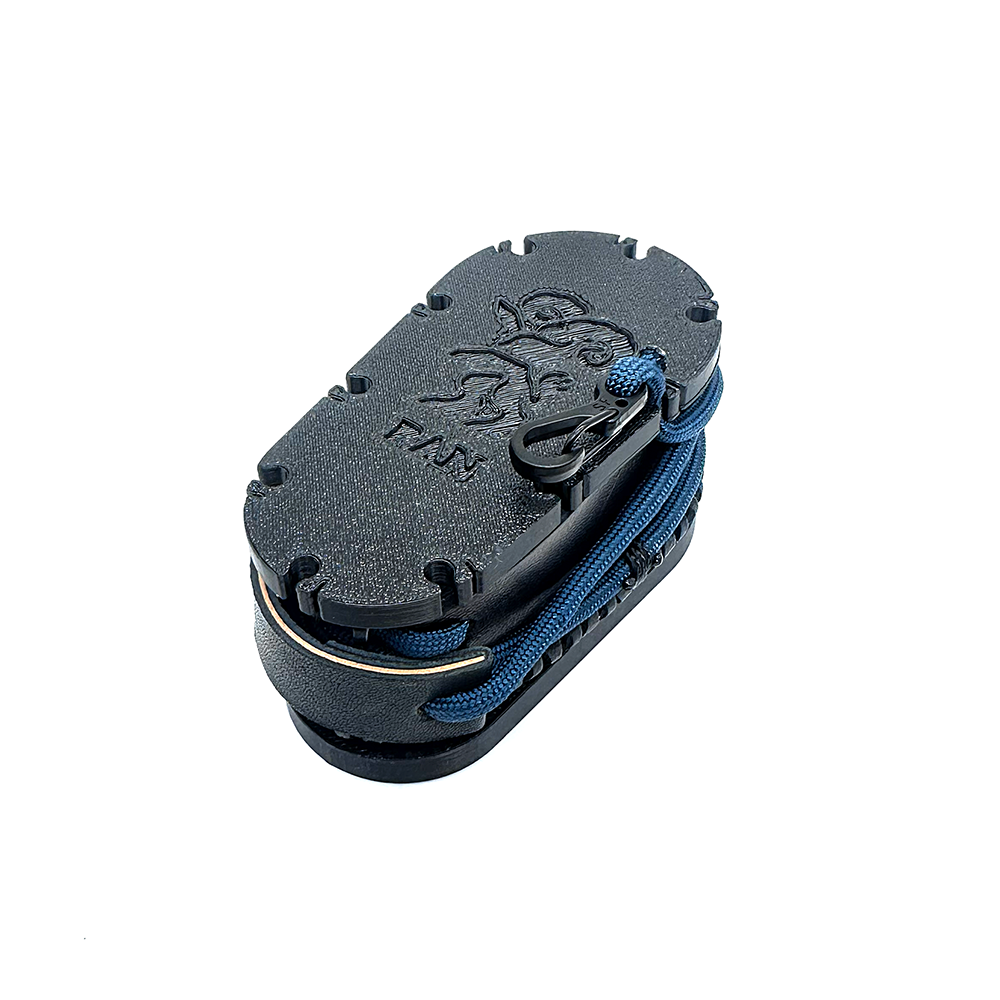 The carry tools are custom-designed and 3D printed for the Pan sling. They provide some of the best options for compact carry and storage. The Reel is a simple and compact go-to method for sling carry and storage. The Little Pan is even more compact, turning the Pan sling into a pocket-friendly world traveler or a keychain accessory.