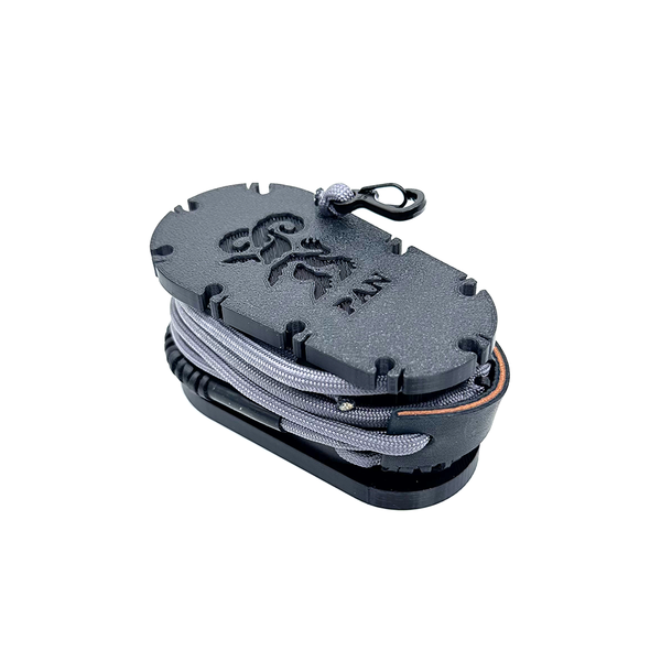 The carry tools are custom-designed and 3D printed for the Pan sling. They provide some of the best options for compact carry and storage. The Reel is a simple and compact go-to method for sling carry and storage. The Little Pan is even more compact, turning the Pan sling into a pocket-friendly world traveler or a keychain accessory.